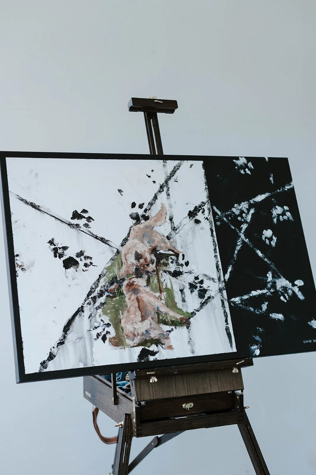 This painting was a complete collaboration with our two furry models. On my Instagram, you’ll see the fun I had teaching the two how to paint and really, just playing with them before putting my own work over the pet portrait.